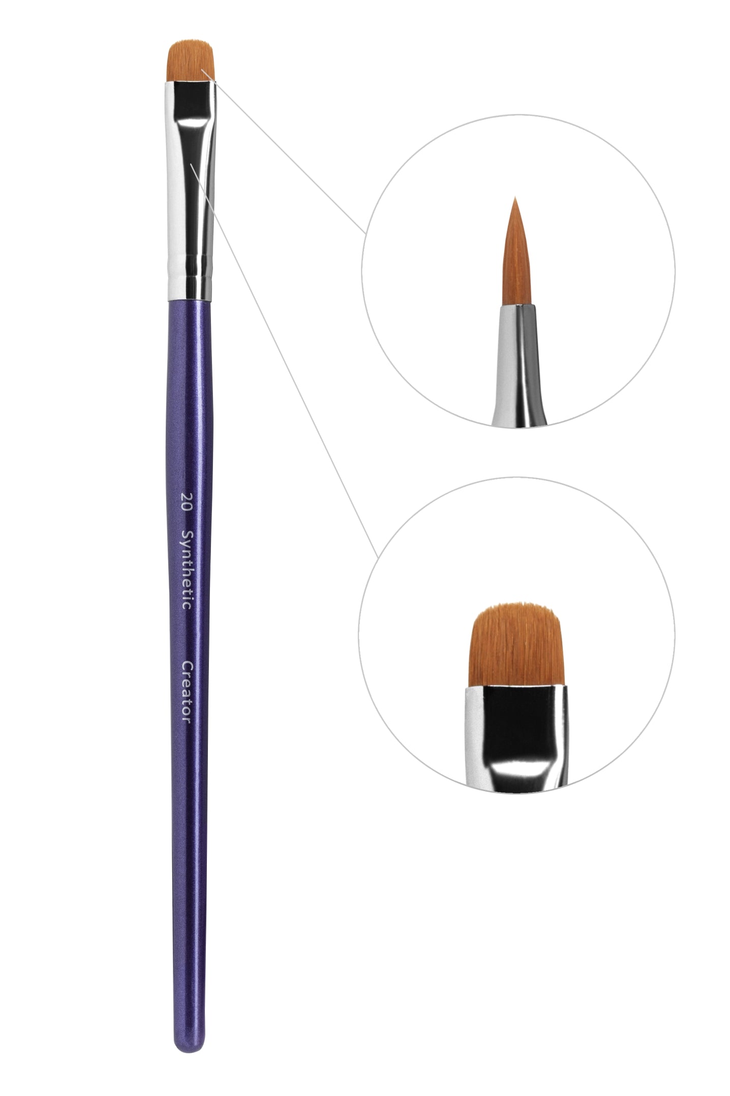 Der Creator Pinsel Nr. 20 ist ein flacher Synthetikpinsel mit sanft gerundeter, ovaler Form für präzise Arbeiten im Brow- und Augenbereich. Er eignet sich ideal für den kontrollierten Auftrag von Augenbrauenfarbe, Henna, Concealer und weiteren Produkten, bei denen saubere Linien und feine Details gefragt sind. Durch seine Form ist er außerdem praktisch für Konturen, Schattierungen und exaktes Arbeiten im Studioalltag.